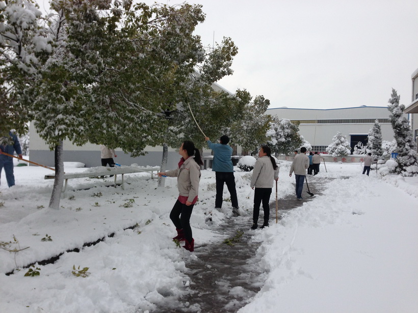 2月18日晚,馬鞍山市普降暴雪,至2月19日早晨,路面積雪覆蓋、道路結(jié)冰,公司整個廠區(qū)白茫茫一片。為保障員工的安全通行和正常生產(chǎn),公司本部機關(guān)、釹鐵硼廠、機械廠、通力公司及南磁廠積極組織員工掃雪。公司領(lǐng)導身先士卒,其他同志們也爭先恐后,盡管寒風凜冽,路面濕滑,但大家踏著積雪,頂著寒風,拿起鐵鍬、掃帚等工具,掃的掃,推的推,個個干勁十足努力爭先,熱火朝天的開展除雪工作。經(jīng)過近2個小時的奮斗,將公司廠區(qū)及樹木上的積雪基本清理干凈,為過往的員工、車輛提供便利,確保了交通順暢和員工出行安全,保證了公司正常生產(chǎn)。