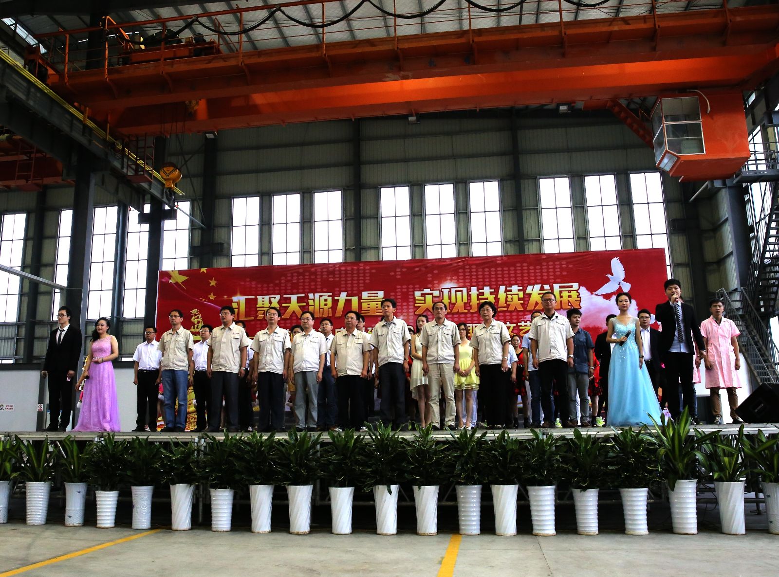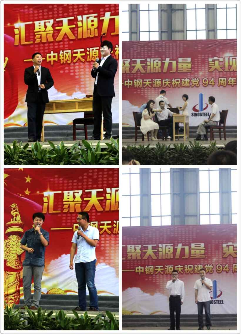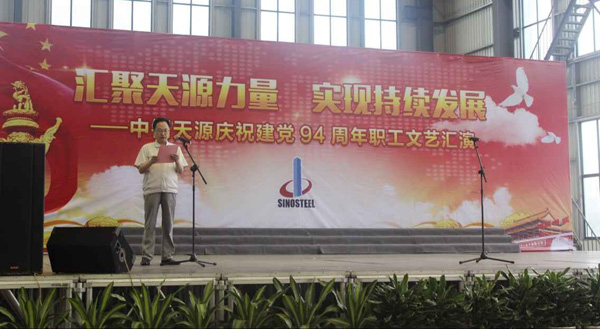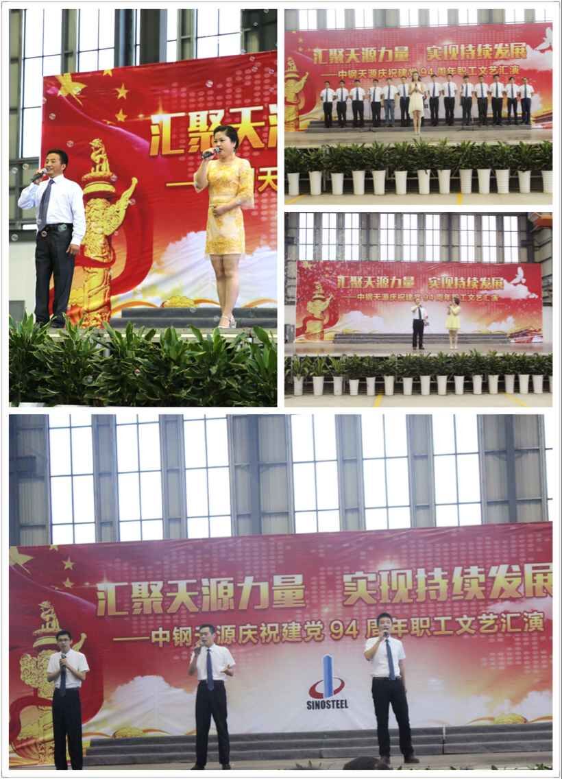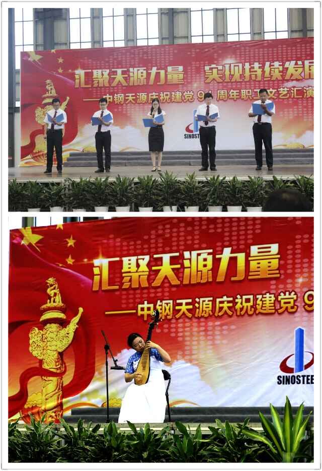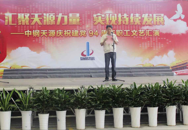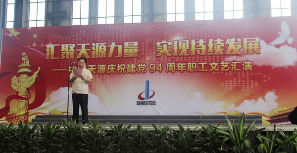 為慶祝建黨94周年,充分展現(xiàn)公司成立以來的輝煌成就、廣大干部員工干事創(chuàng)業(yè)的精神風(fēng)貌,弘揚(yáng)正能量,6月27日上午,由中鋼天源黨委主辦,黨群工作部、工會、團(tuán)委協(xié)辦的“匯聚天源力量、實現(xiàn)持續(xù)發(fā)展——中鋼天源慶祝建黨94周年職工文藝匯演”在公司新區(qū)隆重舉行。公司領(lǐng)導(dǎo)班子及高管,各單位、各部門助理以上中層干部,退休老同志代表,在公司的人大代表、政協(xié)委員,公司第二屆職代會、工代會代表,公司成立以來在各條戰(zhàn)線上獲得榮譽(yù)表彰的先進(jìn)模范人物代表共200余人觀看了演出。