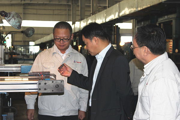 徐總一行現(xiàn)場(chǎng)考察了中鋼天源通力公司的永磁鐵氧體生產(chǎn)車(chē)間,參觀(guān)了公司研發(fā)中心和重點(diǎn)實(shí)驗(yàn)室,并不時(shí)詢(xún)問(wèn)公司的生產(chǎn)情況,聽(tīng)取了公司董事長(zhǎng)、黨委書(shū)記洪石笙關(guān)于中鋼天源經(jīng)營(yíng)工作情況的匯報(bào)。