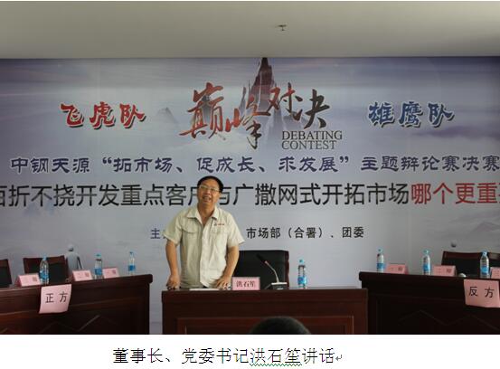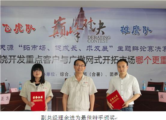 隨后,公司領導和嘉賓分別為獲獎隊伍和最佳辯手頒獎。公司董事長、黨委書記洪石笙在閉幕講話中指出,本次比賽形式新穎,充分結合了公司“緊貼市場求生存”的管理理念,為公司踐行“致力磁業(yè)進步、滿足顧客需求”的使命進一步統(tǒng)一了思想、提高了認識。他強調,2017年公司明確了“以市場為導向,以創(chuàng)新促發(fā)展”的經營思路,公司也成功取得了證監(jiān)會關于重組募集配套資金的批復,公司發(fā)展即將邁入新的階段,新形勢新任務要求我們要繼續(xù)以百折不撓的精神去開拓市場,要以廣撒網式的精神去開發(fā)客戶,要在新的行動上去實現(xiàn)好的品質,通過這種好品質使我們的核心競爭力得到強化、鞏固和提高,廣大青年員工要加強學習,培養(yǎng)能力,把我們的理念推向客戶,以實際行動踐行與傳承公司發(fā)展,為實現(xiàn)中鋼天源早日成為“國內一流、國際知名”的創(chuàng)新型企業(yè)而努力奮斗。