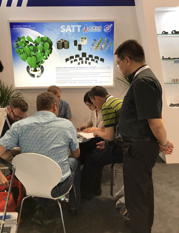 本次展會(huì),中鋼天源通過特裝展臺(tái)重點(diǎn)展出了鐵氧體磁瓦、釹鐵硼磁體和鐵氧體多極磁環(huán),成功吸引了新老客戶前來咨詢洽談。此次展會(huì),不僅展示了良好的企業(yè)形象,提高了品牌的知名度,同時(shí)也穩(wěn)定、深化了客戶關(guān)系,結(jié)識(shí)了大量的潛在客戶,為今后國際市場的開拓奠定了良好的基礎(chǔ)。
